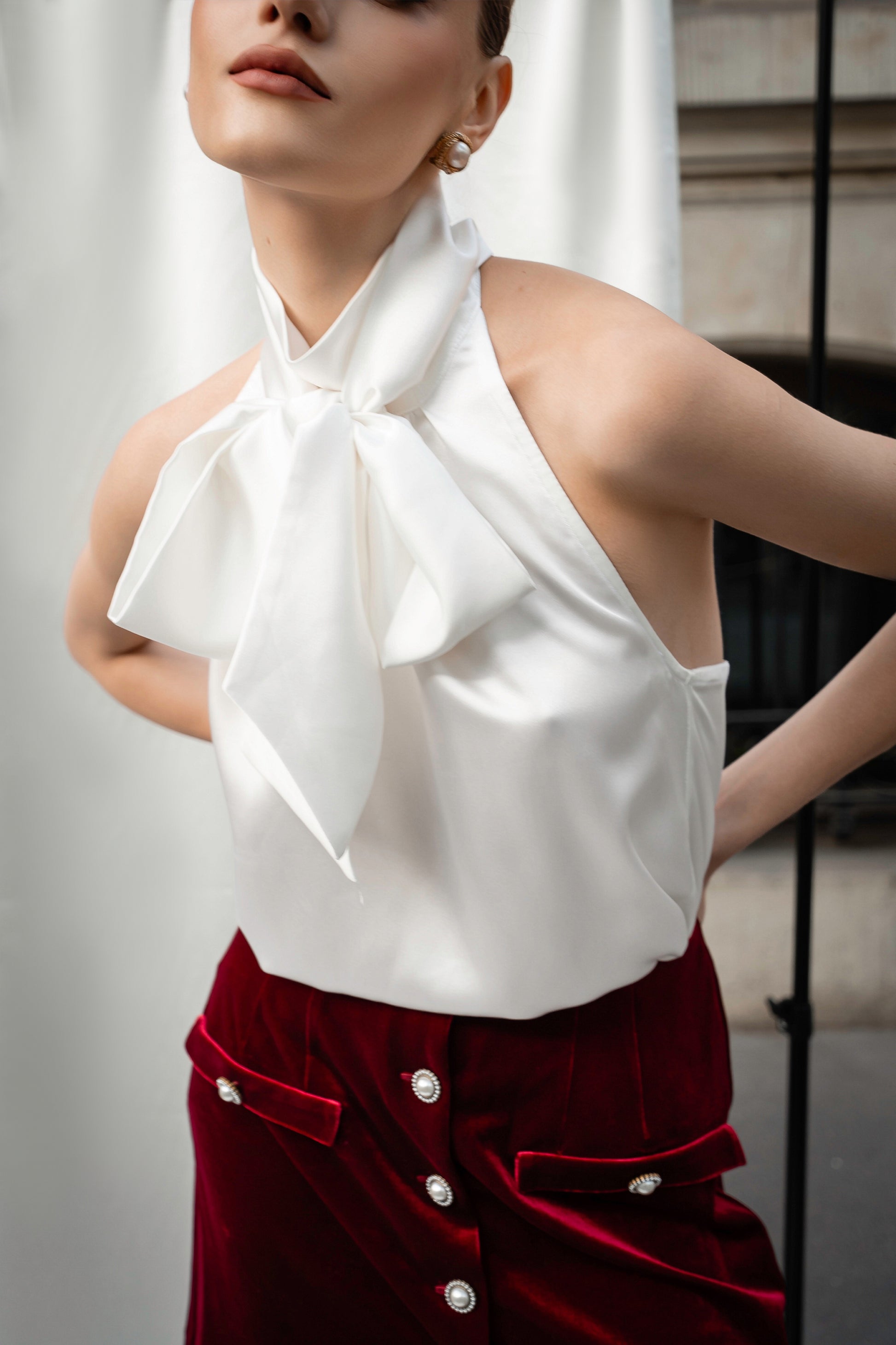 The fitted silhouette, inspired by Japanese minimalism and French elegance, emphasises the figure, while the unique details turn this suit into a true work of art.